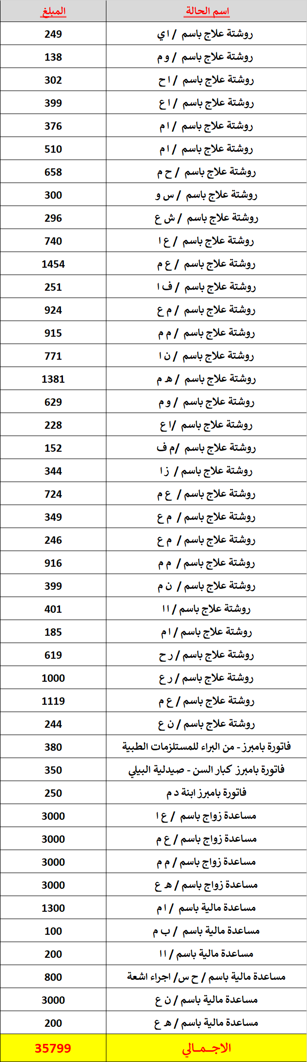 واليكم بيانات بالمساعدات التي قدمتها الجمعية لحالات جمعية بداية لتنمية المجتمع ( بداية الخير ) خلال شهر ابريل 2025.