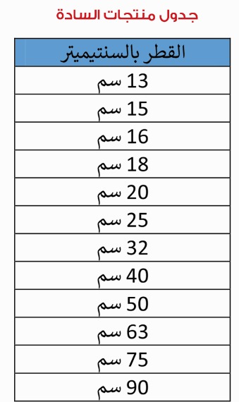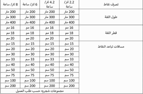 ⇐جـــدول منتـجــات خرطــــوم الــــــري ذو المنقط الداخلي